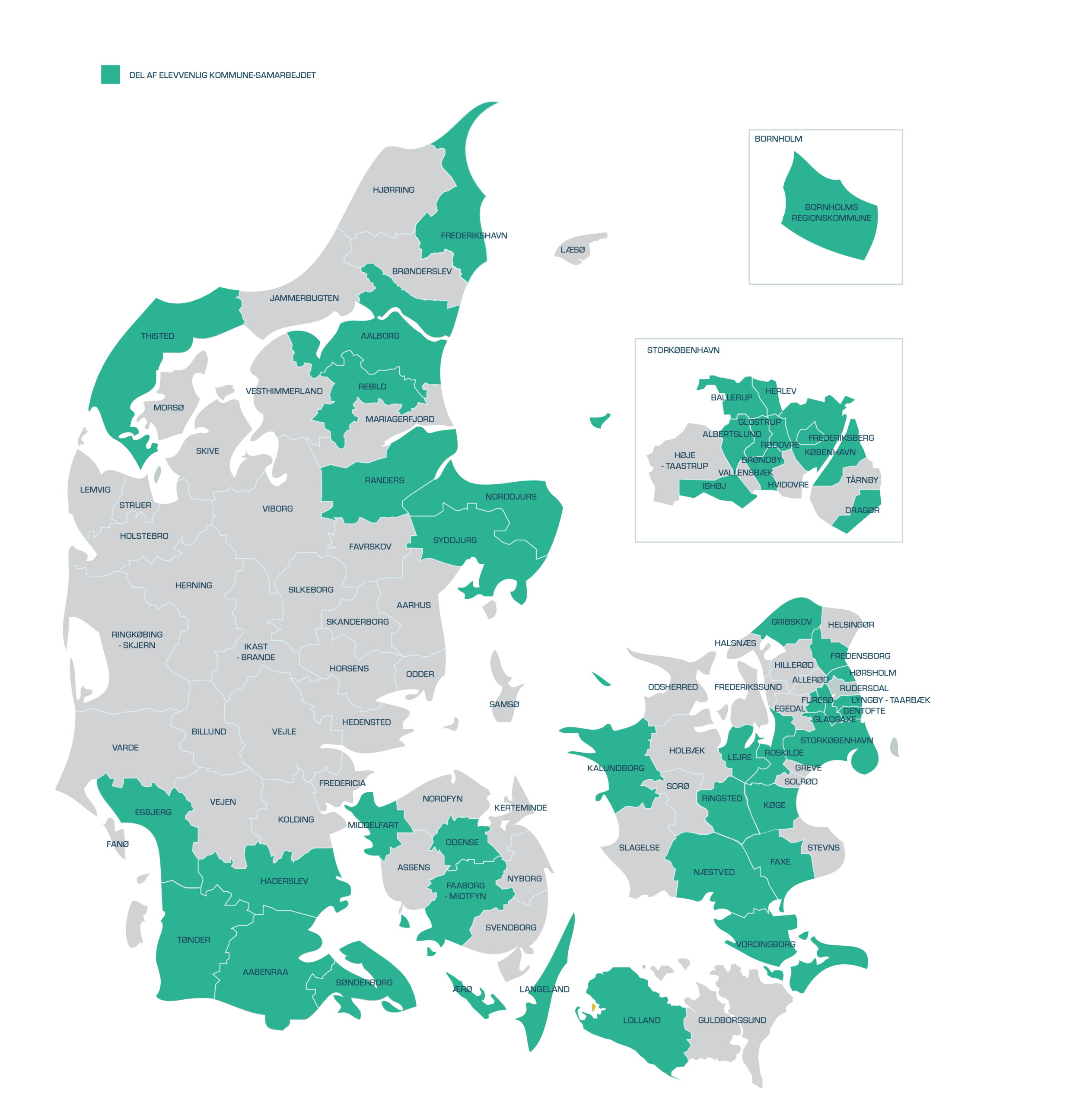 Flere end 40 af landets kommuner er samarbejdspartnere, hver kommune med deres særlige tiltag og særpræg